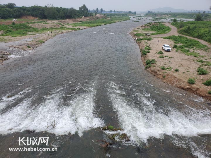8月6日,在唐河雹水乡段,水流潺潺。与5月份相比,这里的河道发生了“翻天覆地”的变化。