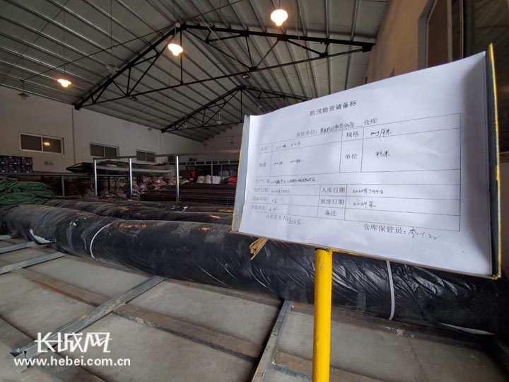 在唐县防汛物资储备站,各类储备物资有序摆放。 长城网记者 刘鑫鹏 摄